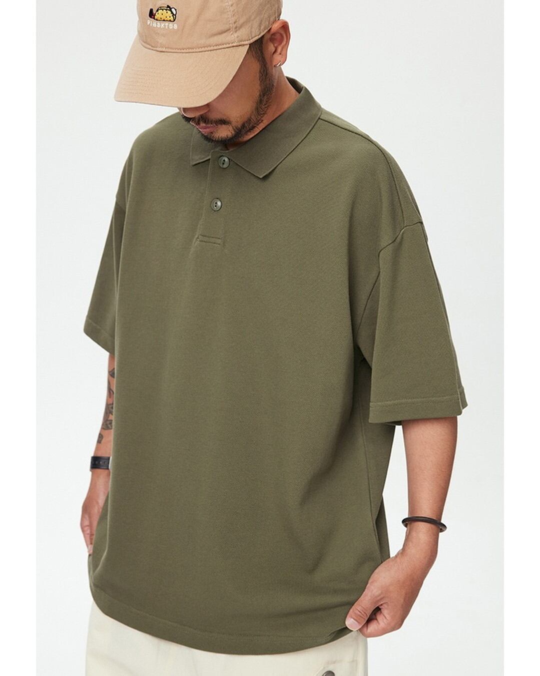 オーバーサイズの半袖ポロシャツ。
