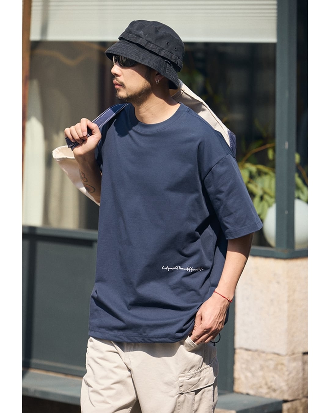 裾のドローコードでシルエットを調節できるボックスシルエットのクルーネック半袖Tシャツ。
