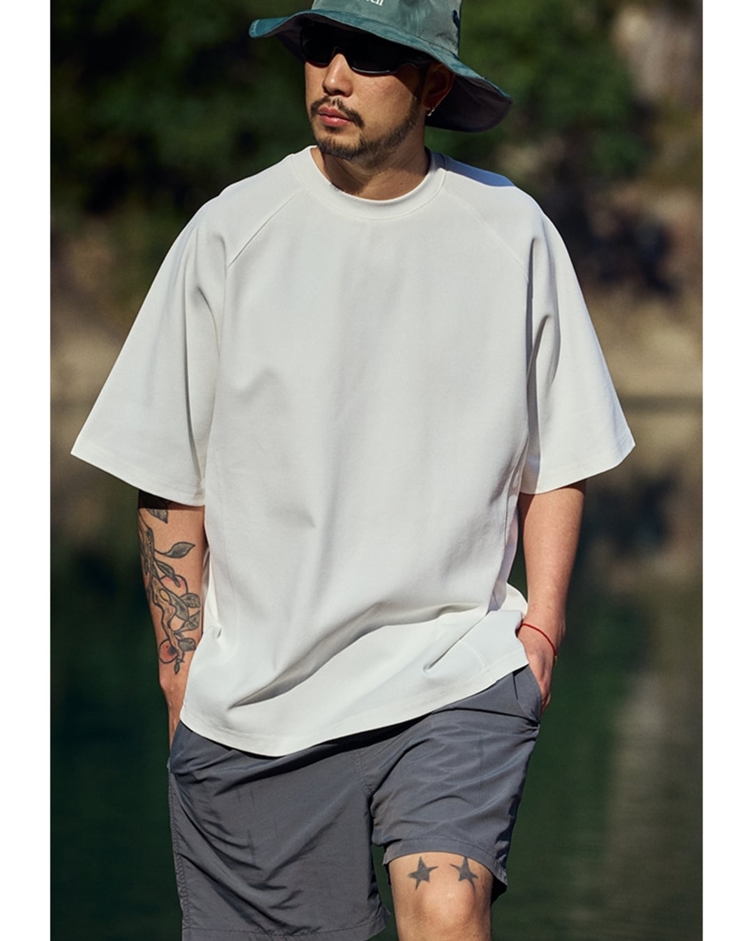 オーバーサイズシルエットのクルーネック半袖Tシャツ。