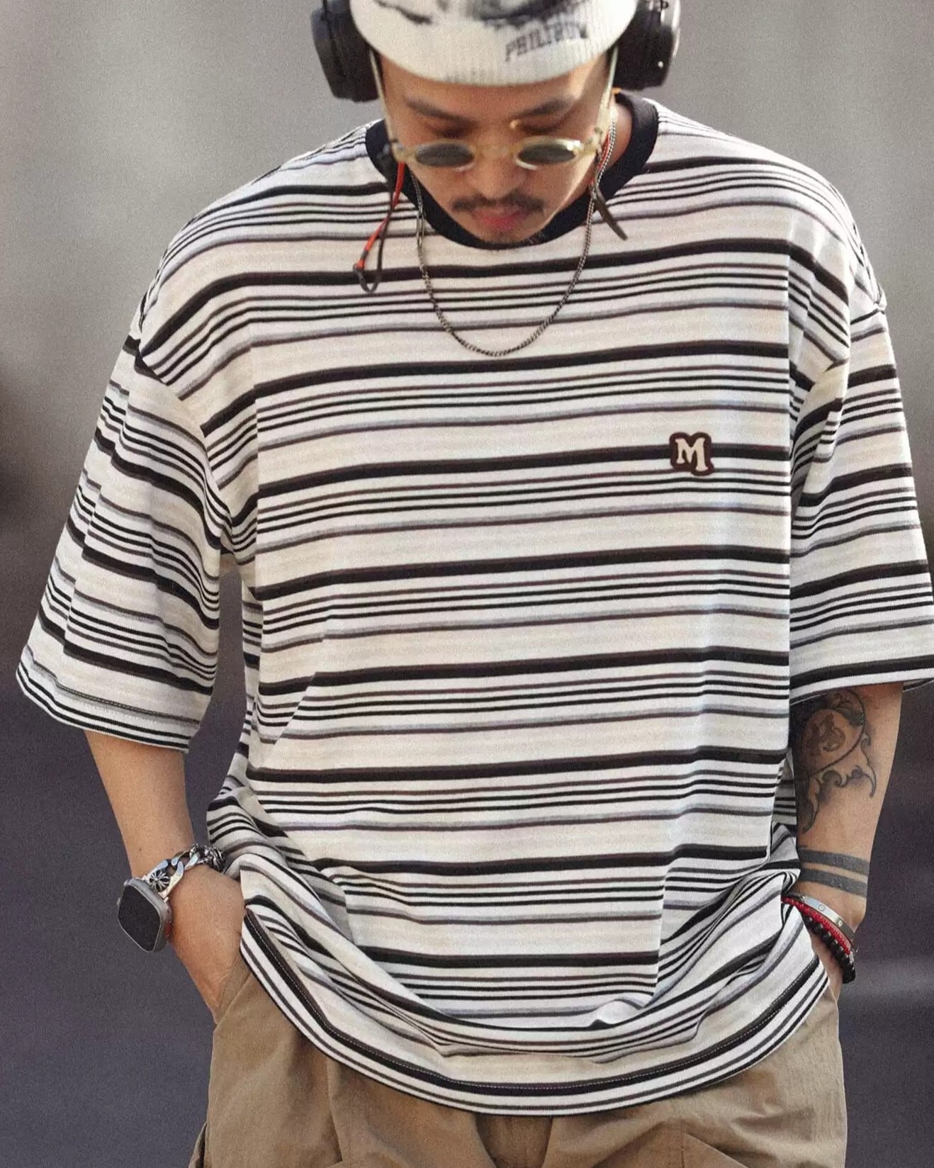 様々な色のストライプが織りなす洗練されたデザインが、カジュアルスタイルを格上げします。