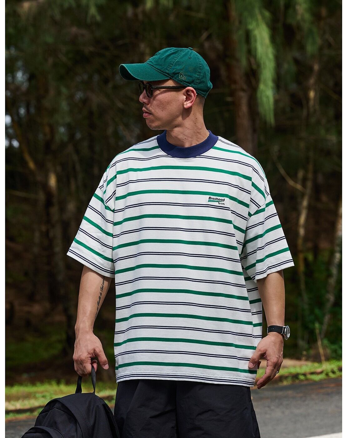 シンプルながらも存在感のあるボーダー柄が特徴の半袖Tシャツ。大きめのシルエットが、こなれた雰囲気を演出します。一枚で着るだけでスタイリッシュな印象を与え、様々なボトムスと相性抜群です。着回し力が高いので、ワードローブに加えたい一着です。
