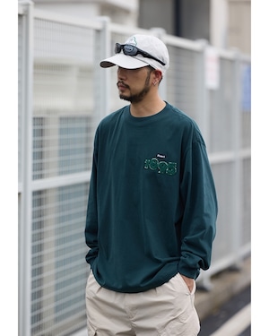 立体的なロゴプリントがポイントの長袖クルーネックTシャツ。