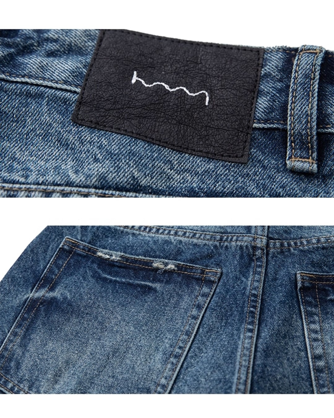 膝部分のダメージ加工がこなれ感を演出。様々なトップスと合わせやすく、デイリーユースに最適な一本です。