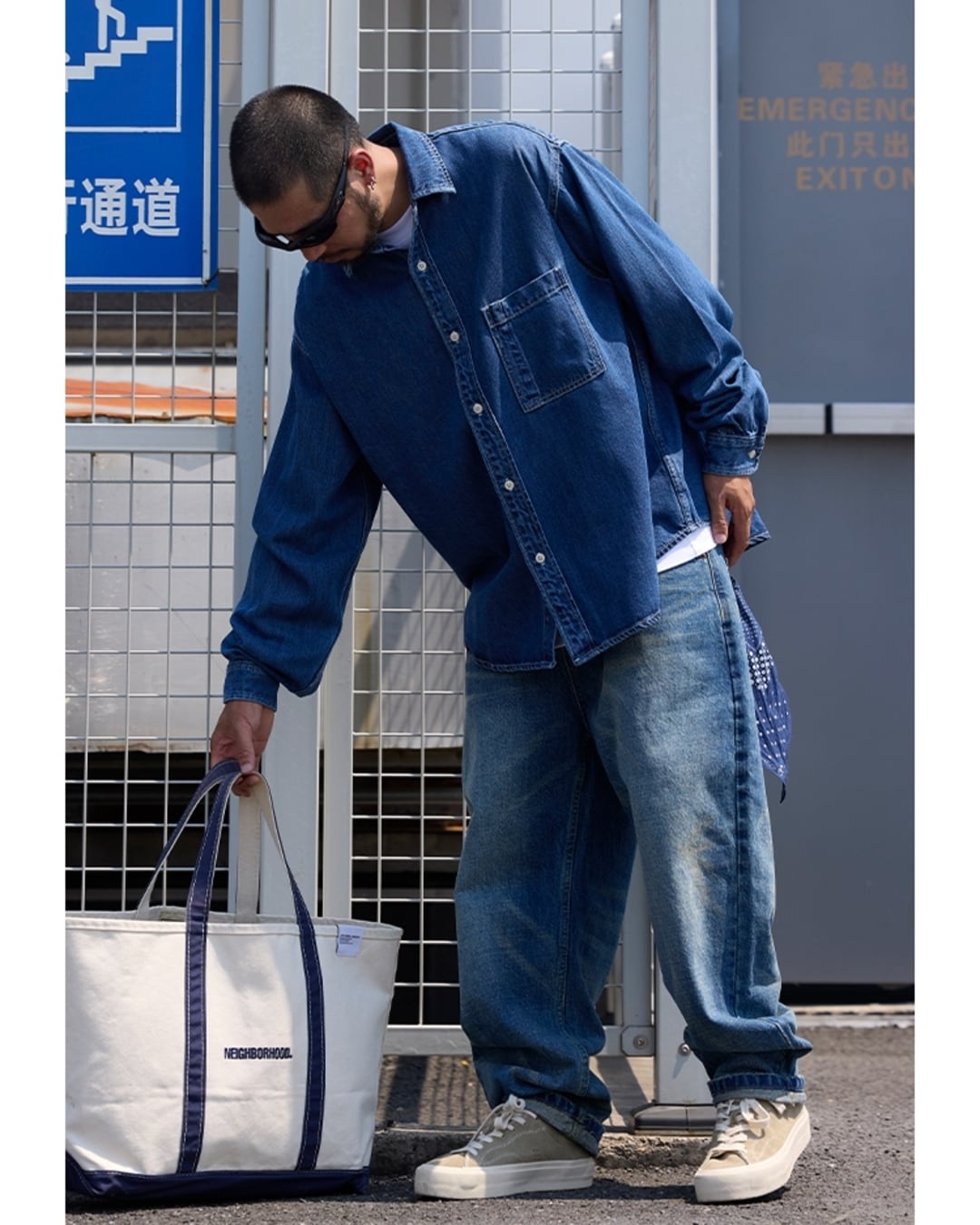 シンプルながらシルエットにこだわったバギーデニムパンツ。