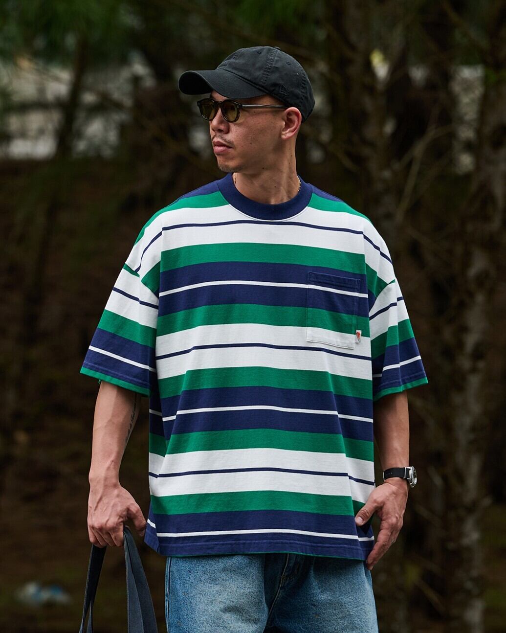 オーバーサイズのシルエットが魅力のボーダーTシャツ。