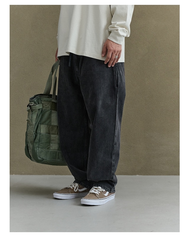 ワタリから裾にかけてたっぷりとゆとりを持たせた、リラックス感のあるストレートシルエットが特徴です。