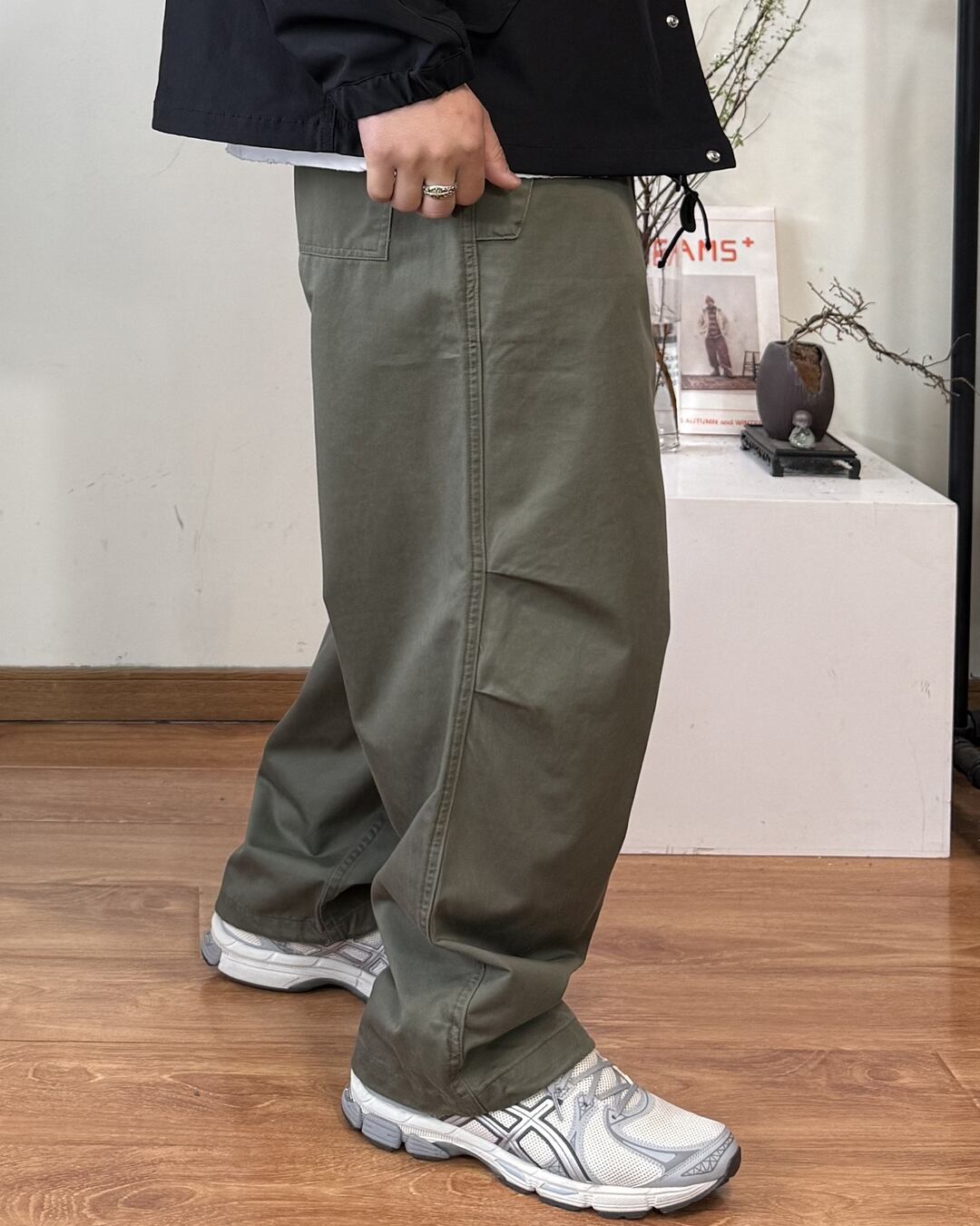 ワイドレッグカーゴパンツ。ゆったりとしたシルエットが特徴的な一本です。 ワークテイストのデザインでありながら、様々なトップスと合わせやすく、デイリーユースに最適です。 カジュアルなスニーカーからドレスシューズまで、幅広いシューズとのコーディネートが可能です。 【サイズ】 【S】 ウエスト:80cm/総丈:100cm/太もも周り:72cm/裾まわり:22cm 【M】 ウエスト:84cm/総丈:102cm/太もも周り:74cm/裾まわり:23cm 【L】 ウエスト:88cm/総丈:104cm/太もも周り:76cm/裾まわり:24cm 【XL】 ウエスト:92cm/総丈:106cm/太もも周り:78cm/裾まわり:25cm ※測り方により、サイズには多少の誤差がございます。 【素材】 コットン100% ------------------------------------------------------------------------------------------------------------------------------------------------------------------ ◼️注意事項 ・タイミングによっては 商品在庫切れにより注文キャンセルとさせていただく恐れもございますので、予めご了承くださいませ。 ・こちらは輸入品となります。日本製とは検品基準が異なる為、 新品未使用品でもごくわずかな汚れや傷がある場合もございます。 ・商品の色味は、お手持ちのスマートフォンの画面によって実物と若干異なる場合がございます。 ・イメージ違いやサイズ・カラー交換等、お客さまご都合による交換、返品は対応出来かねます。 ・タグデザインは画像と異なる場合がございます。予めご了承くださいませ。 【 お届けについて 】 こちらの商品は海外店舗より取り寄せ・発送となる為、 ご入金から1~4週間前後でお届け致します。 <重要>詳しい配送スケジュールなどが記載されておりますので、初めてご購入の方は必ずお読みください。 https://www.xpose.jp/about