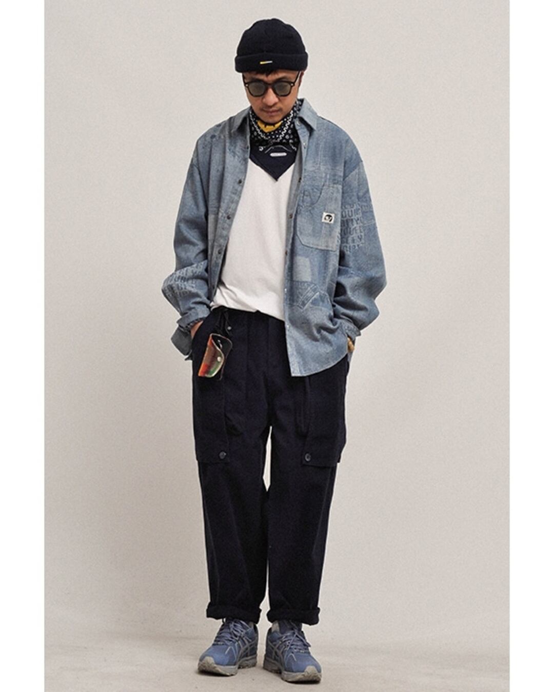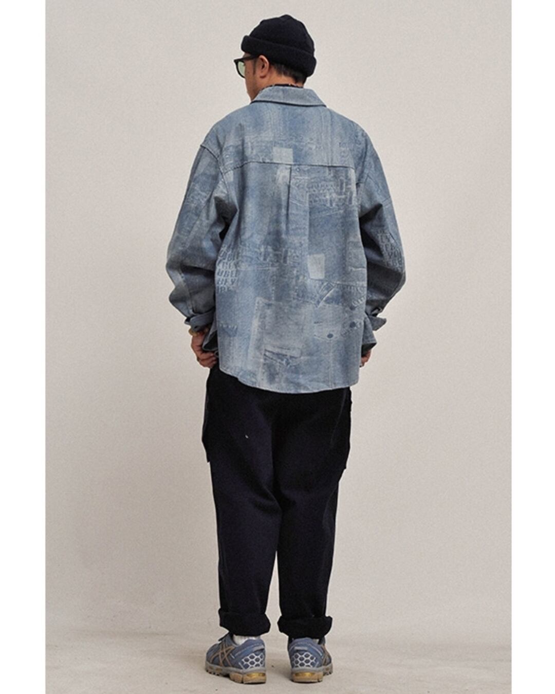 パッチワークのデニム仕立てオーバーサイズシャツです。