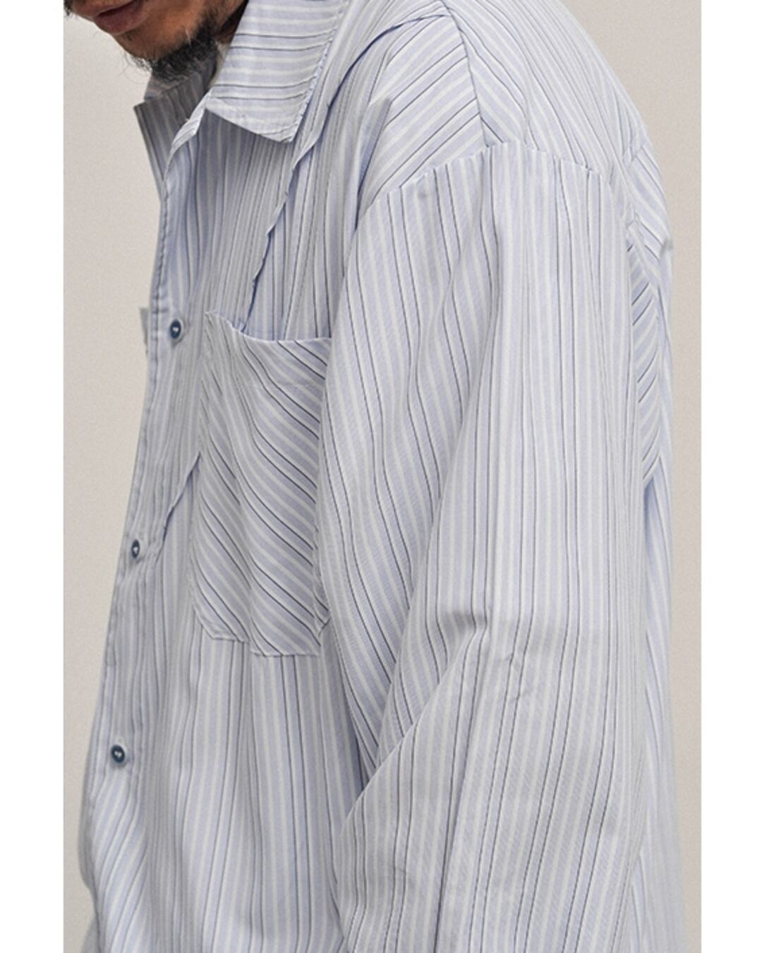 細かなストライプ柄とピンタックが特徴的なロングスリーブシャツ。