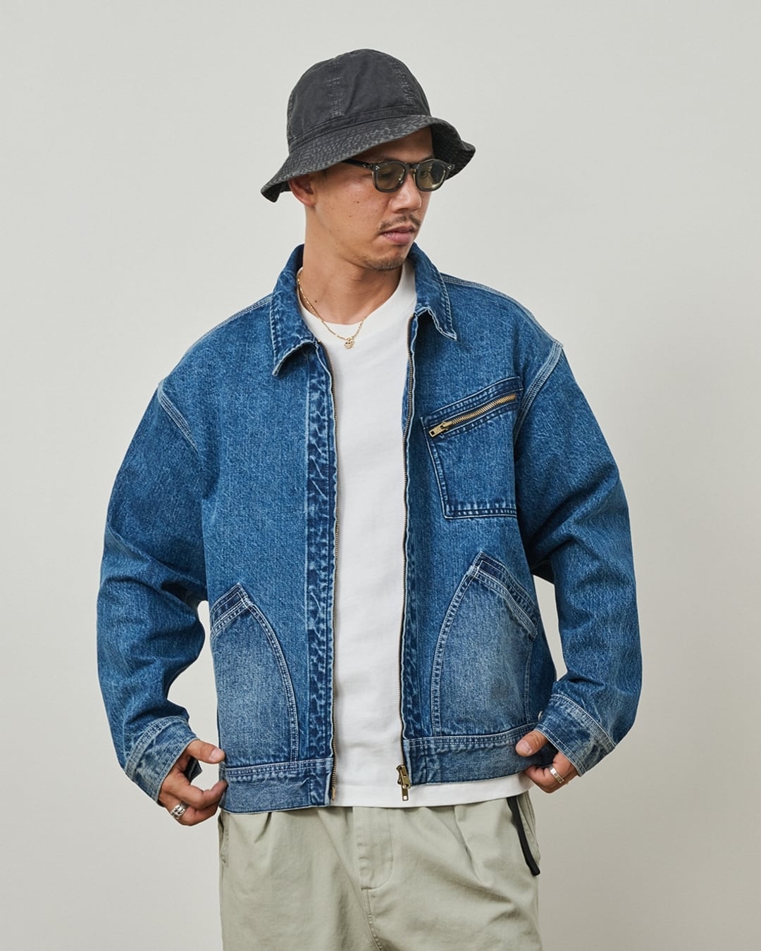 Zip-up Drop Shoulder Denim Jacket x00854