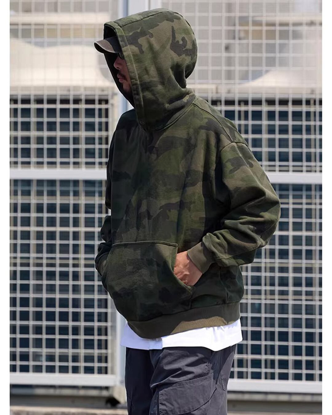 カモフラージュ柄が目を引くスウェットフーディーパーカー。カジュアルなスタイルに遊び心をプラスできるアイテムです。ゆったりとしたシルエットで、リラックスした着心地を提供します。