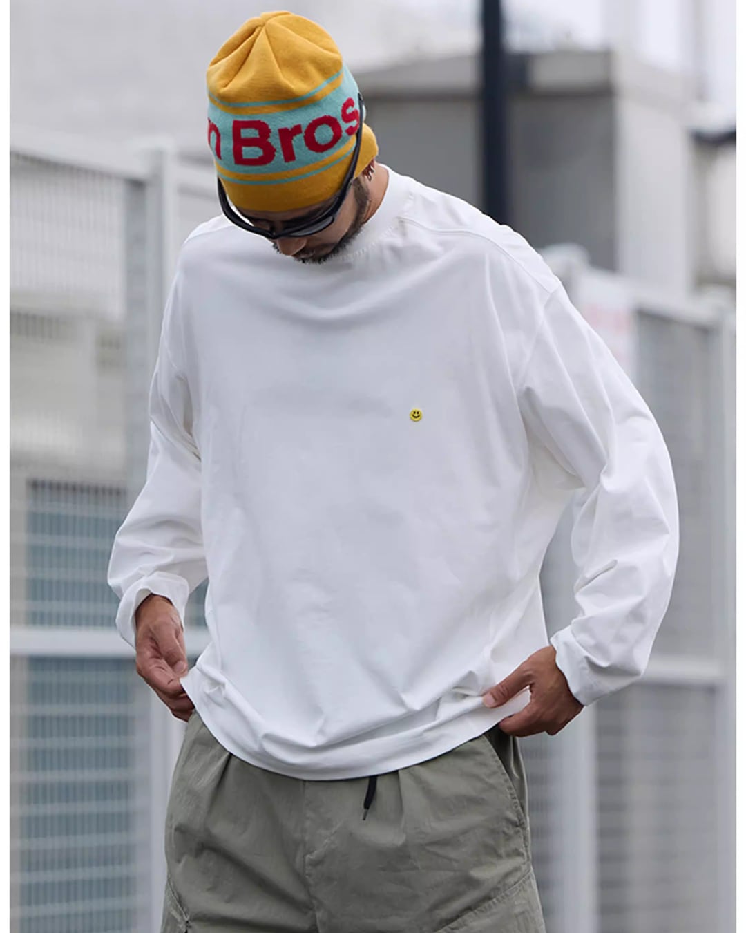 ドロップショルダーが特徴的なカットソー。ゆったりした丈感で、リラックスした着心地を提供します。シンプルなデザインなので、様々なボトムスとの相性も抜群です。胸元のワンポイントが遊び心をプラスデザインです。