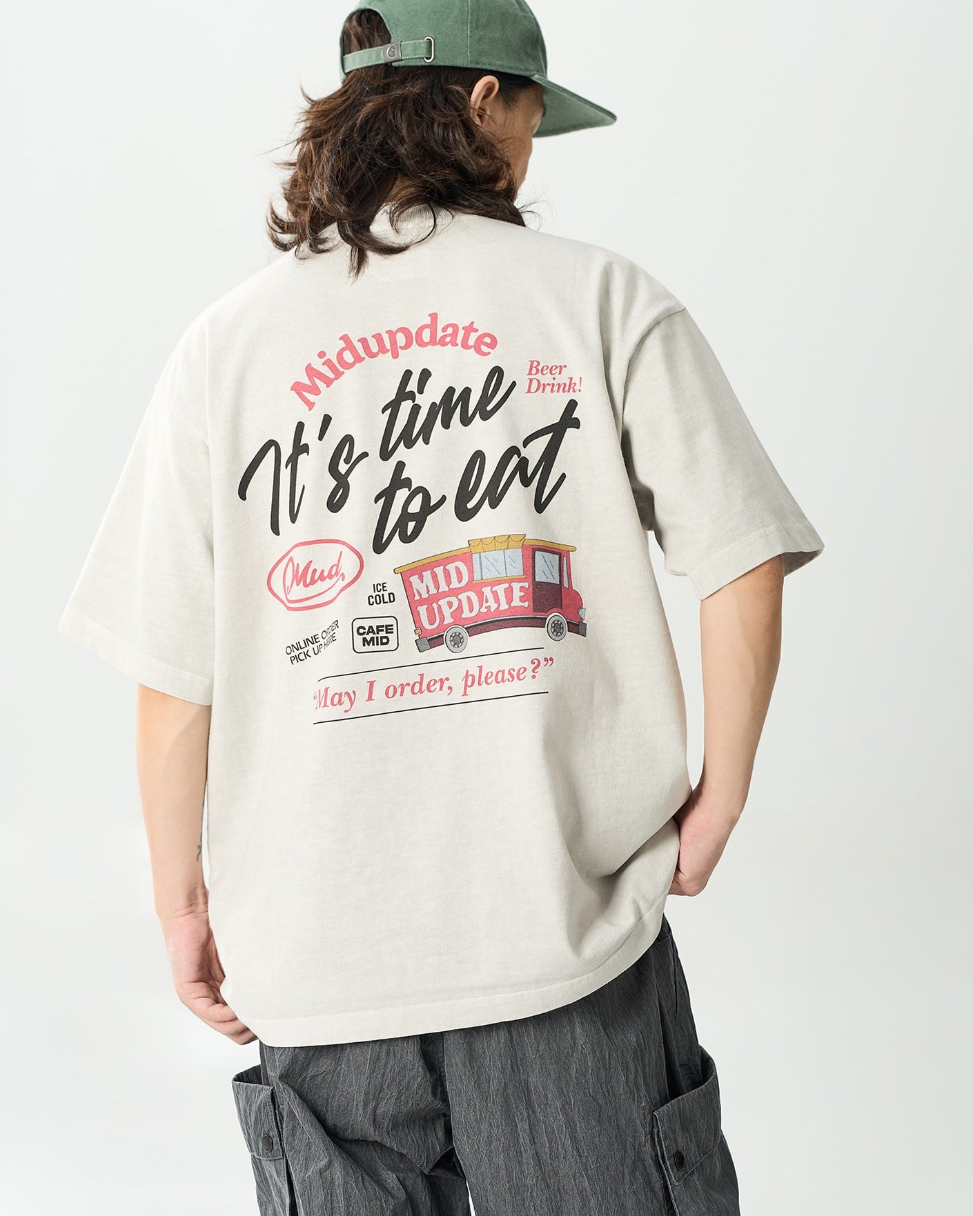 存在感のあるバックプリントが特徴的な半袖Tシャツ。