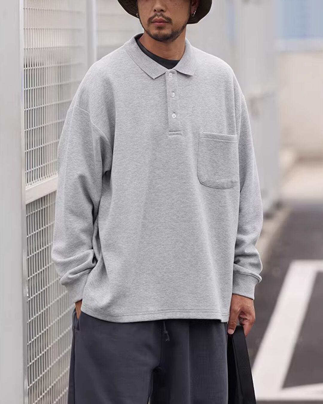 ゆったりとしたシルエットが特徴的な長袖ポロシャツ。カジュアルながらも上品な印象を与え、様々なコーディネートに合わせやすい一枚です。胸元のパッチポケットがさりげないアクセントに。